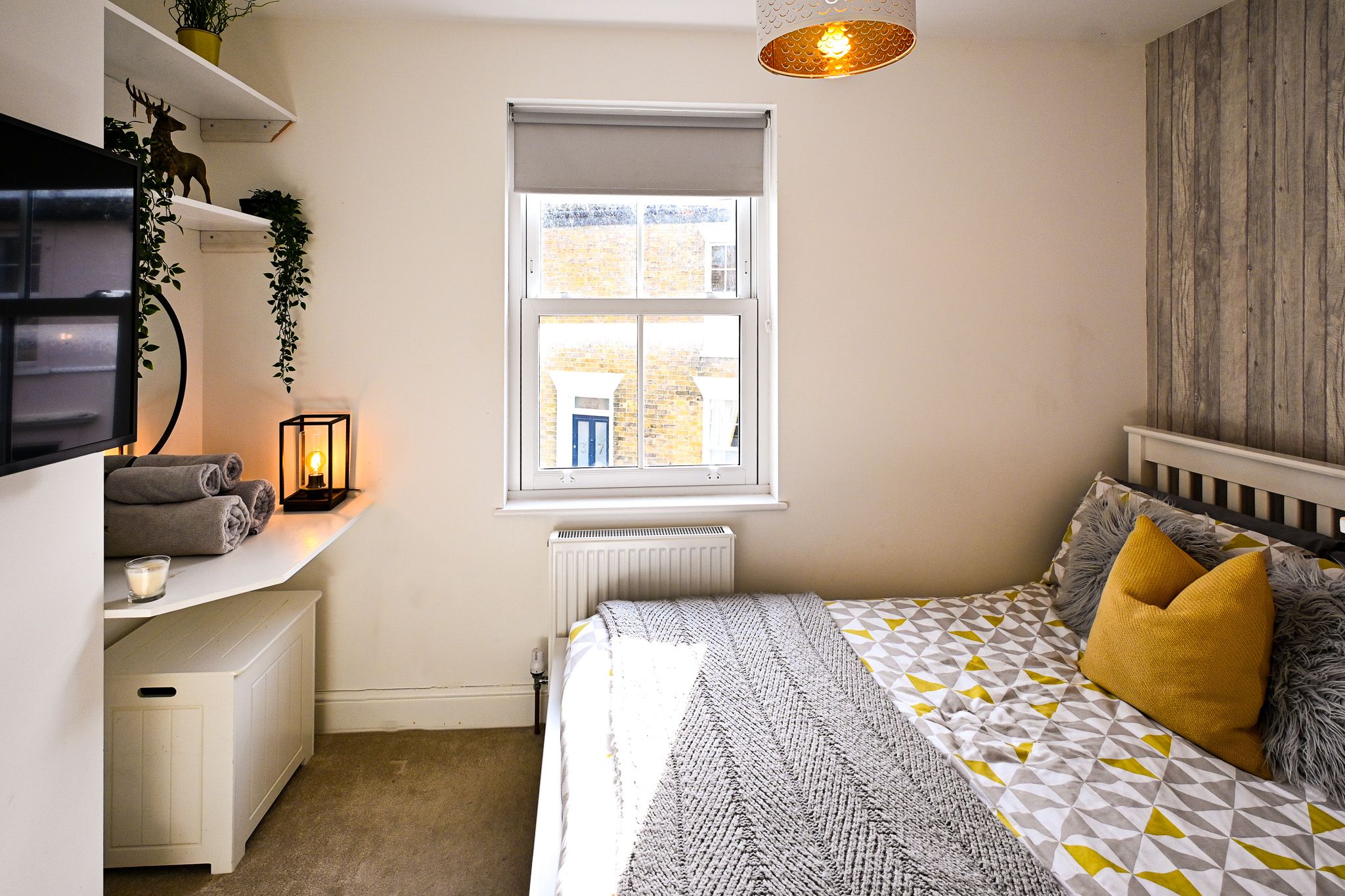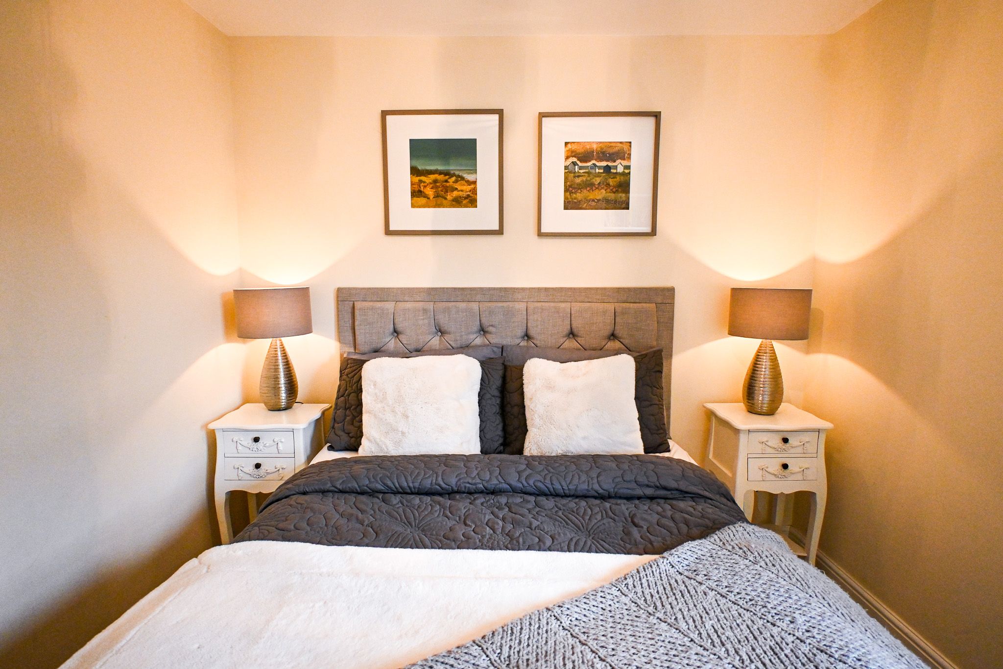 Head upstairs to find two restful bedrooms: a king-size and a double, both thoughtfully furnished with storage, soft décor, and their own Smart TVs. These rooms are perfect for quiet evenings, lazy mornings, or catching up on your favourite shows in comfort.