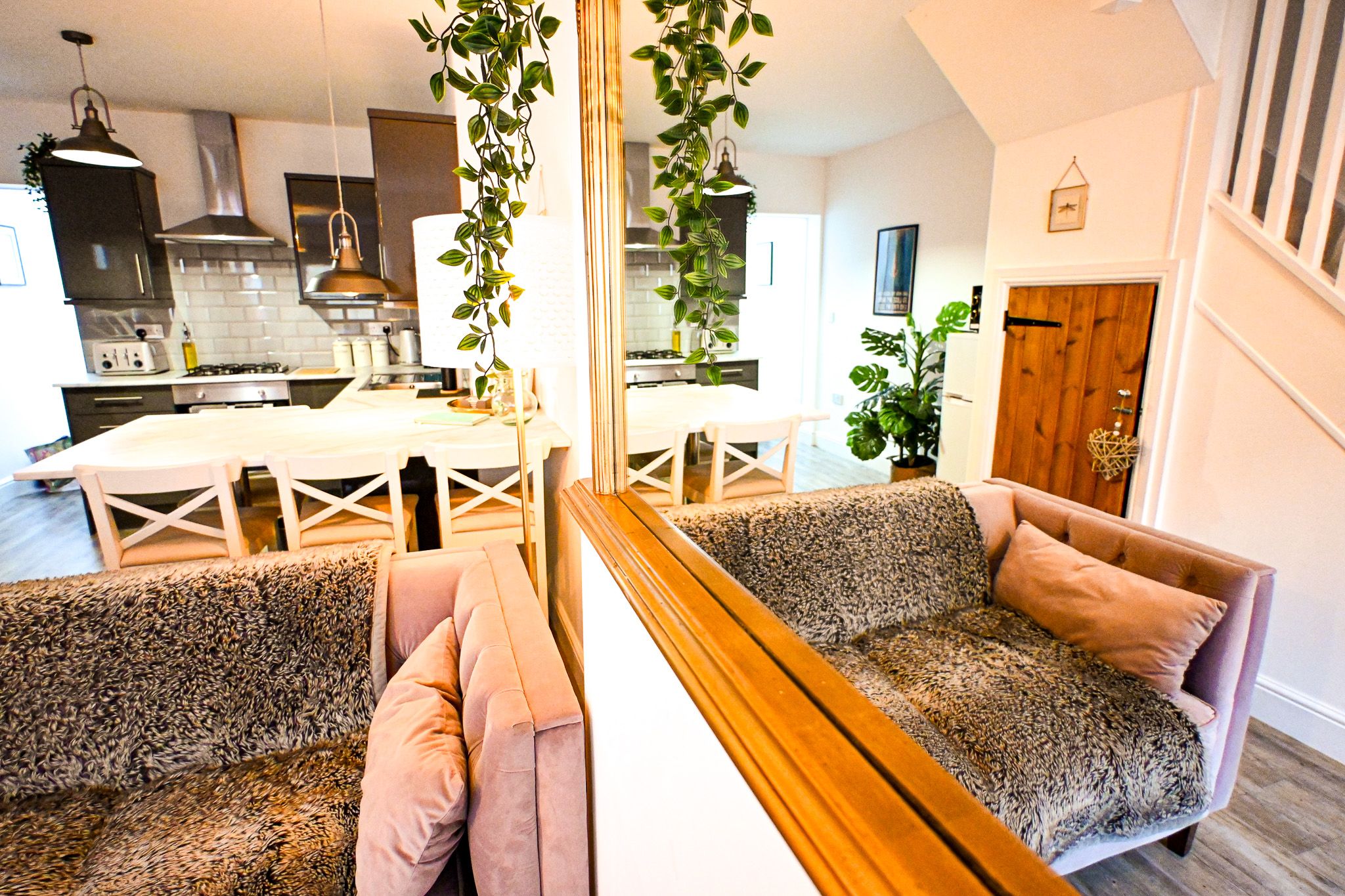Inside, the cottage feels instantly welcoming. The open-plan living, dining and kitchen space is designed for togetherness, whether that’s cooking supper side-by-side, lingering over a bottle of wine at the dining table, or curling up by the electric fire after a day exploring. While there’s no TV in the lounge, this space is all about conversation, board games, and switching off properly. Smart TVs are thoughtfully placed in both bedrooms, giving everyone the option to unwind in their own way later on.
