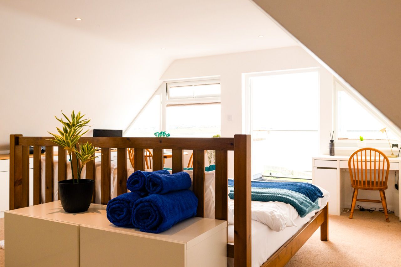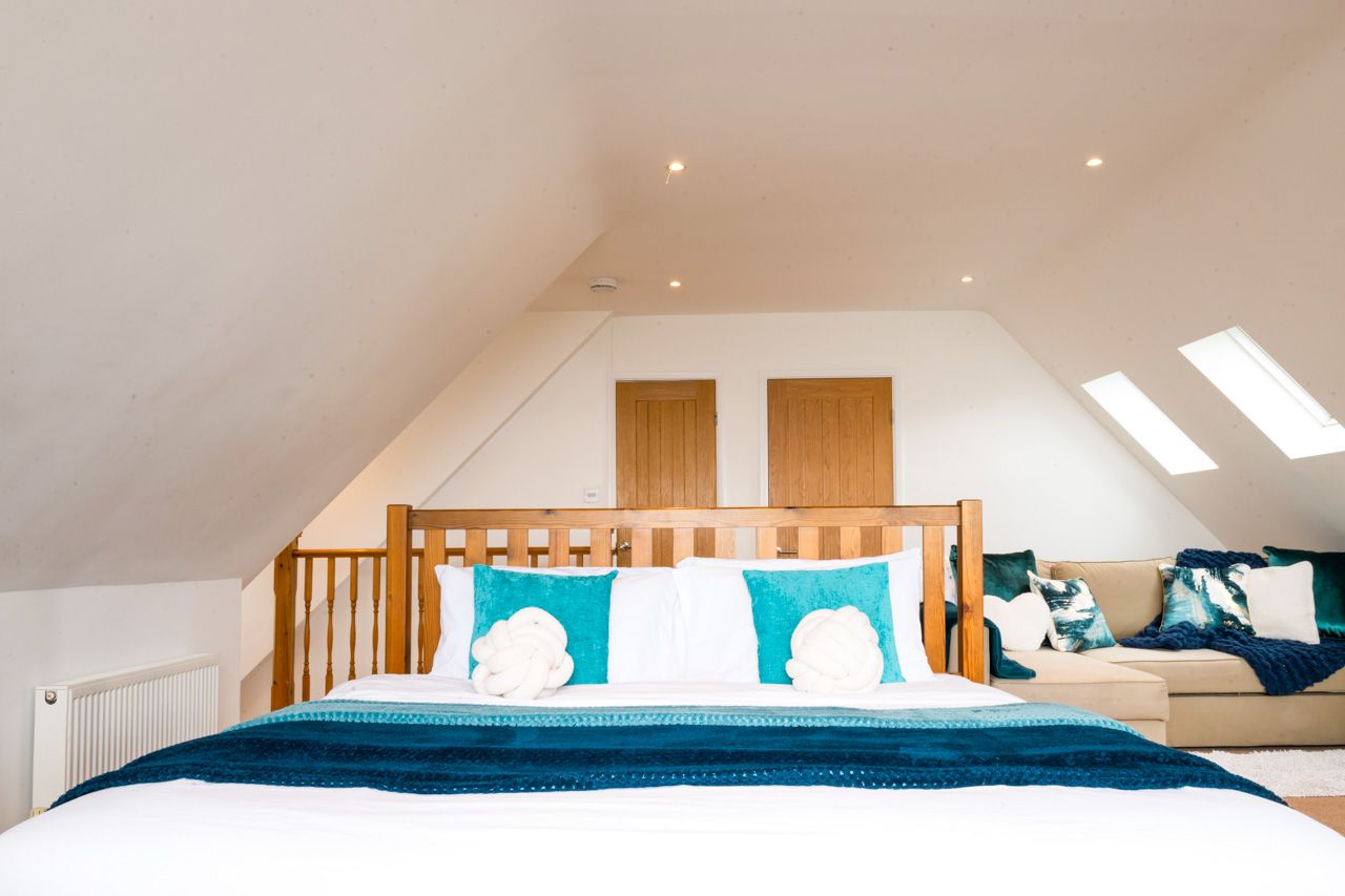 Generous master suite with super king-size bed (sleeps 2), sofa bed (sleeps 2) and en-suite shower room