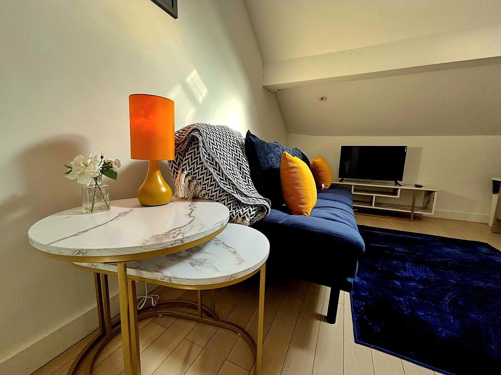 You'll find the kitchen and main living space just up the stairs on the upper mezzanine with everything you could need for your stay in the apartment in the heart of the Cavern Quarter. This is where you will find the sofa bed, suitable for 1 person to sleep on.