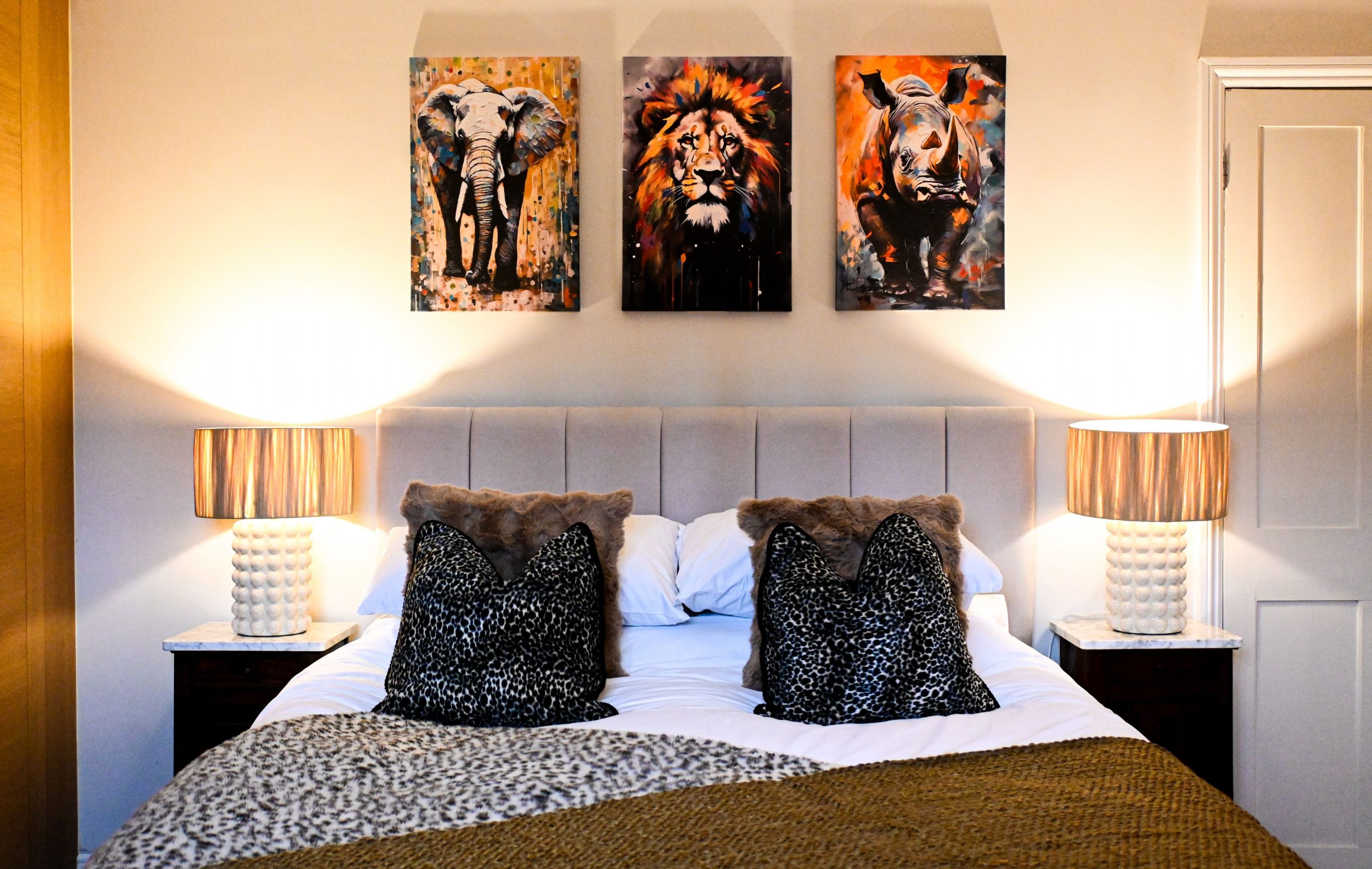 Every room carries the home’s bold animal-print theme, giving The Walmer Retreat a fun, distinctive personality that perfectly complements its relaxed coastal setting.